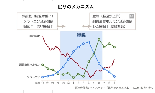 良質な睡眠をとるためには、睡眠中の汗や発熱による熱を逃し、脳を速く冷やすことが重要です。